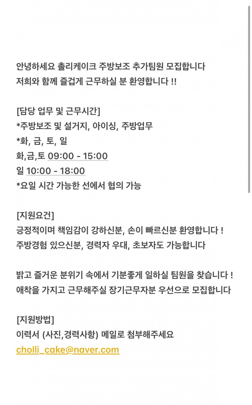 베이커리 카페 주방보조 모집합니다! 페이지 정보 작성자 cOOOOe 작성일25-01-17 23:57 조회3,885회 연락처 010-0000-0000 급여 월급 : 000 관련링크 본문 주소 : 제주특별자치도 제주시 신설로2길 1-1 다온드리 이전글 다음글 목록