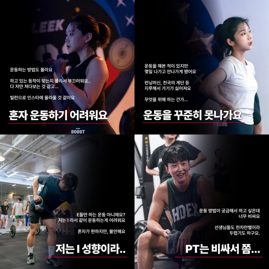 슬릭부스트는 그룹수업형태를 띄며 기능, 웨이트, 유산소, 인터벌, 서킷 등의 많은 운동을 적용한 진행하는 프로그램 입니다!