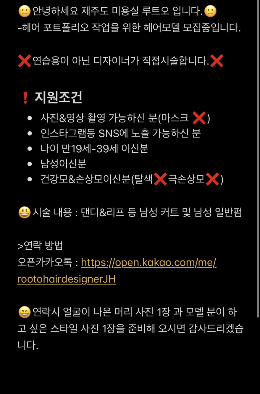 제주시 도남동 미용실 루트오 남자 헤어 모델 구인합니다!! 페이지 정보 작성자 ROOOO 작성일25-01-03 11:18 조회3,804회 연락처 010-3698-9824 급여 협의 : 0 관련링크 본문 오픈카카오톡 : https://open.kakao.com/me/rootohairdesignerJH 주소 : 제주특별자치도 제주시 연삼로 332 루트오헤어 이전글 다음글 목록