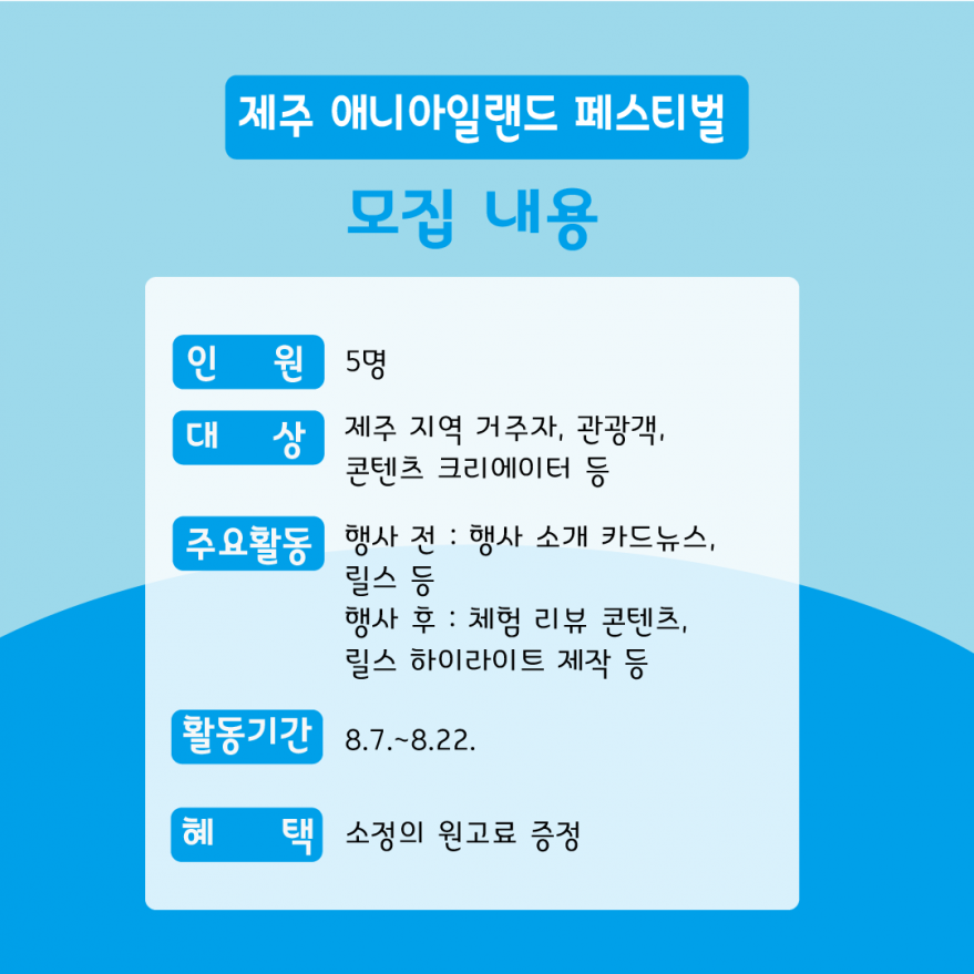 -모집인원: 5명-모집대상: 제주지역 거주자, 관광객, 콘텐츠 크리에이터 등