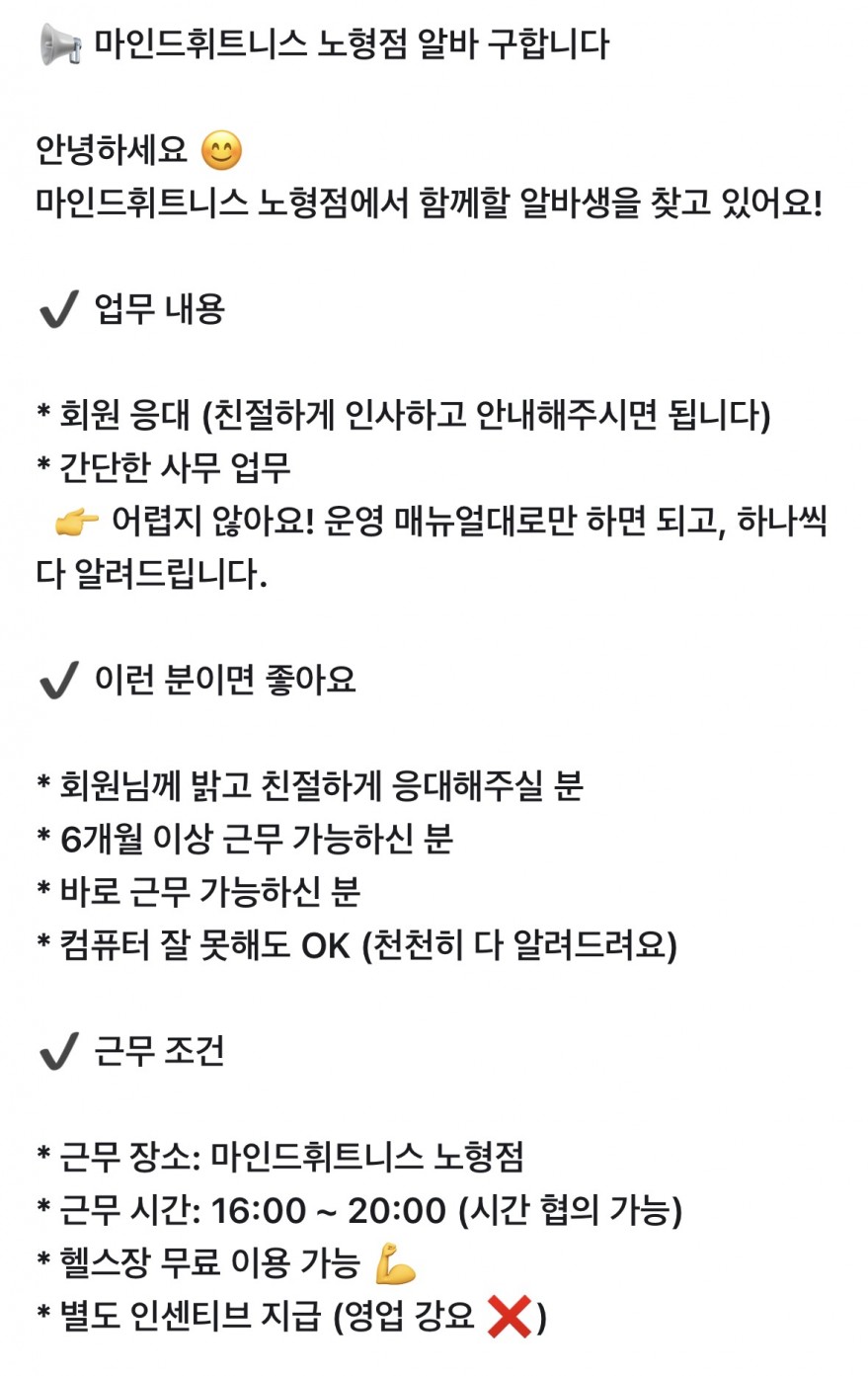 단순 알바가 아니라, 배우면서 성장할 수 있는 자리입니다