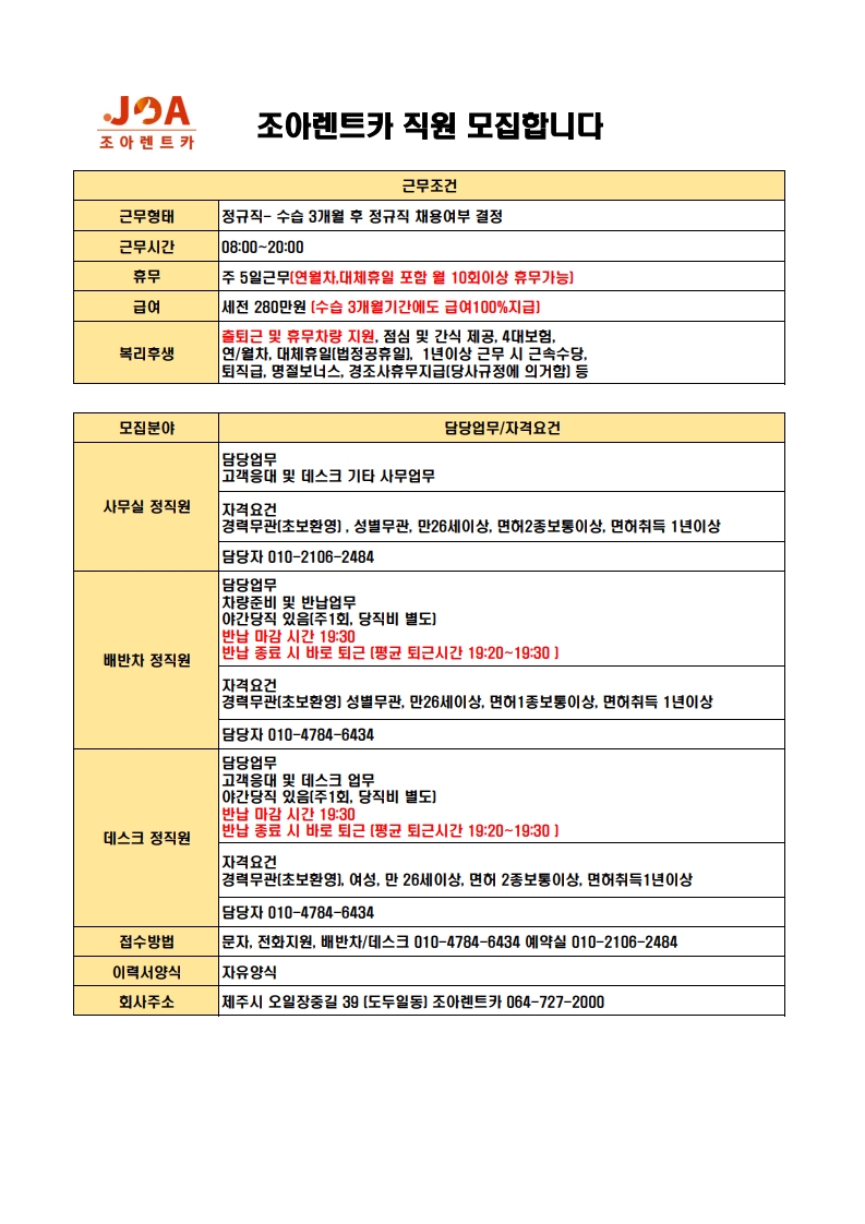 ⭐໒(◉ᴥ◉)७조아렌트카 / 예약실데스크배차 / 출퇴근휴무차량지원 페이지 정보 작성자 jOOOOa 작성일25-12-20 09:20 조회443회 연락처 010-4784-6434 급여 월급 : 280만원 관련링크 본문 주소 : 제주특별자치도 제주시 오일장중길 39 조아렌트카 이전글 다음글 목록