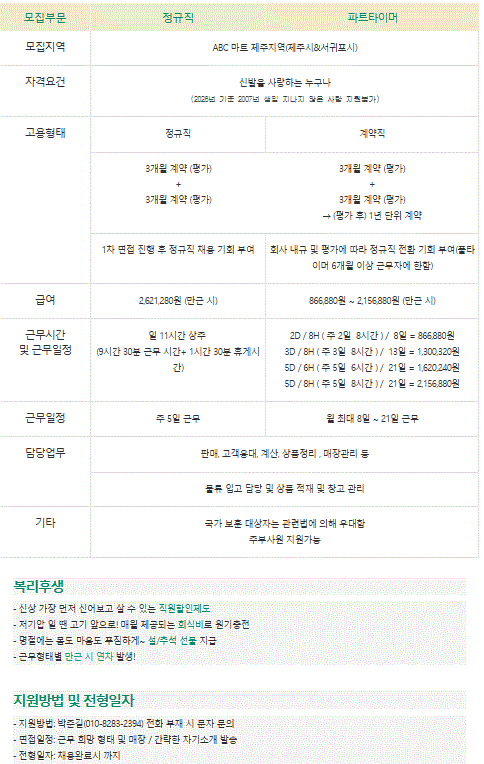 ABC-MART ST 서귀포점 단시간근로자 채용 모집합니다 페이지 정보 작성자 AOOO트 작성일26-02-14 10:21 조회454회 연락처 010-8283-2394 급여 월급 : 2,156,880 관련링크 본문 1 주소 : 제주특별자치도 서귀포시 중정로91번길 2 인디안 서귀포시 중정로91번길2, 1층 ABC-MART ST 서귀포점 이전글 다음글 목록