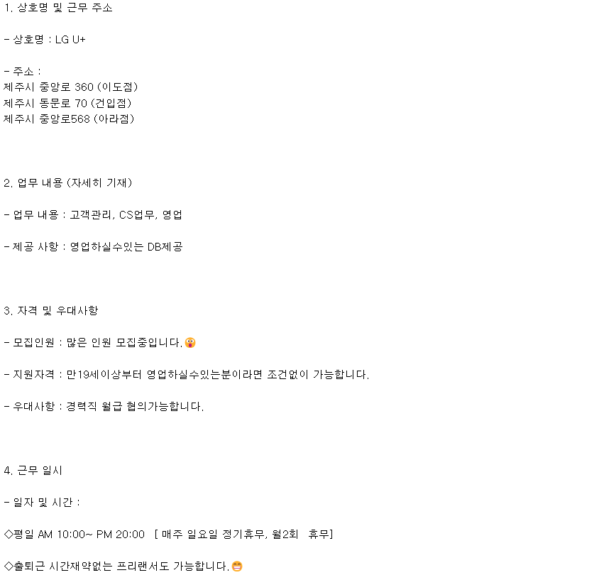 일자리 찾고계시죠?? 페이지 정보 작성자 읽OOO요 작성일24-11-11 16:29 조회3,424회 연락처 010-7979-2692 급여 월급 : 230+@ 관련링크 본문 . 주소 : 제주특별자치도 제주시 중앙로 360 1 이전글 다음글 목록