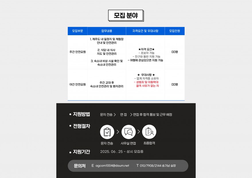 25년 하반기 제주 수학여행 안전요원을 모집합니다