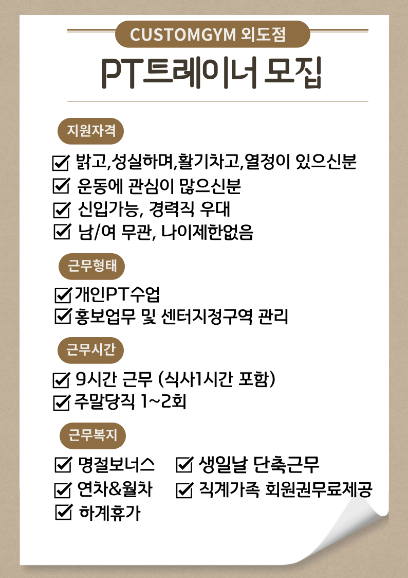 ★★ 커스텀짐 외도점에서 PT선생님을 모집합니다 ★★ 페이지 정보 작성자 커OOOOO점 작성일24-08-12 10:03 조회4,120회 연락처 010-9838-3254 급여 협의 : 협의 관련링크 본문 저희 커스텀짐외도점에서 함께 근무하실 PT선생님께서는 많은 지원부탁드릴꼐요 ^^ 주소 : 제주특별자치도 제주시 우령남길 12 1~2층 이전글 다음글 목록