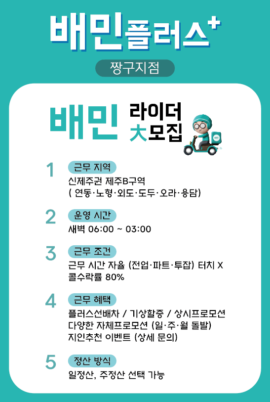 배민플러스 신제주권 라이더 모집