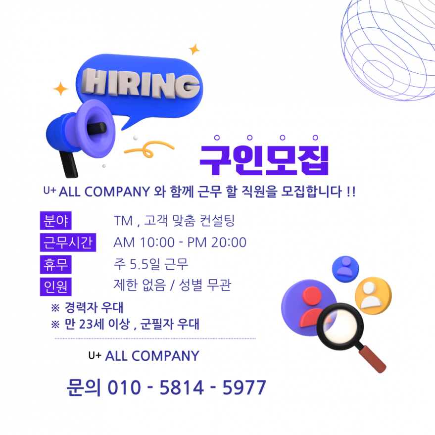 LGU+ 올컴퍼니에서 직원채용합니다