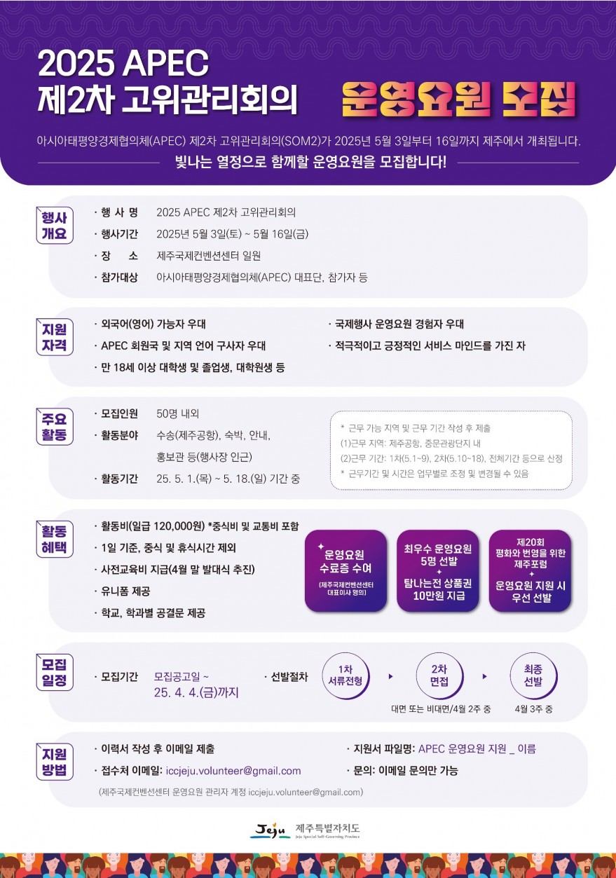 2025 APEC 제2차 고위관리회의 운영요원 모집(주관: 제주국제컨벤션센터)