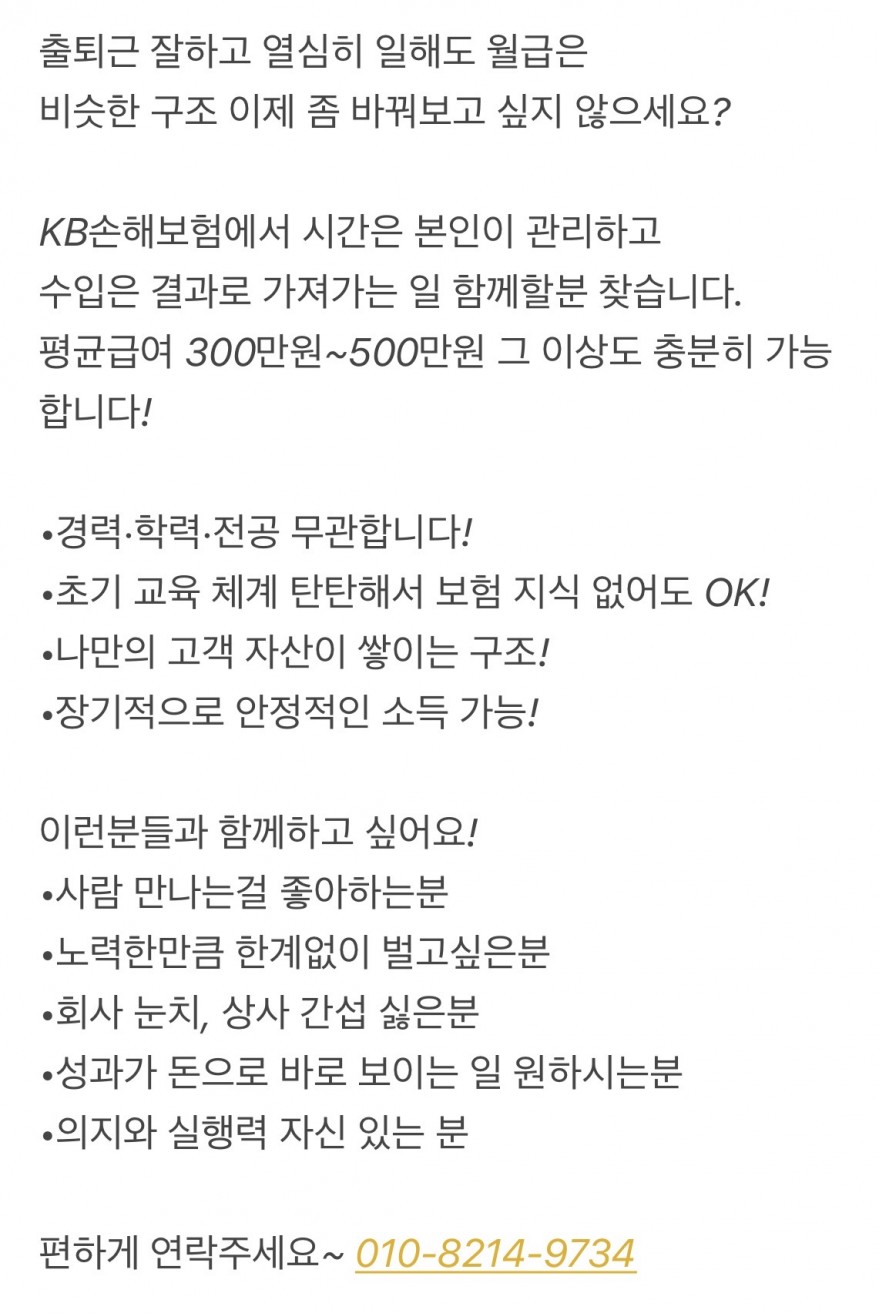 ✔️자유로운출퇴근/자차필수/월300만원이상!/KB손해보험 페이지 정보 작성자 pOOa 작성일26-01-29 09:36 조회70회 연락처 010-8214-9734 급여 월급 : 3000000 관련링크 본문 연락주세요~01082149734 주소 : 도령로115 이전글 다음글 목록