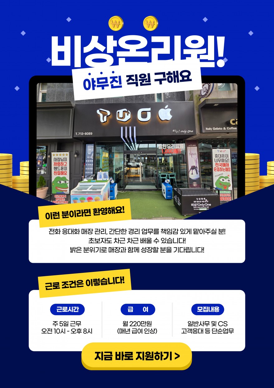 휴대폰매장(노형점)CS경리구해요^^ 페이지 정보 작성자 아O라 작성일26-01-30 12:22 조회150회 연락처 010-7588-7819 급여 월급 : 220만원 관련링크 본문 - 주소 : 제주 제주시 월랑로 8길 1 이전글 다음글 목록