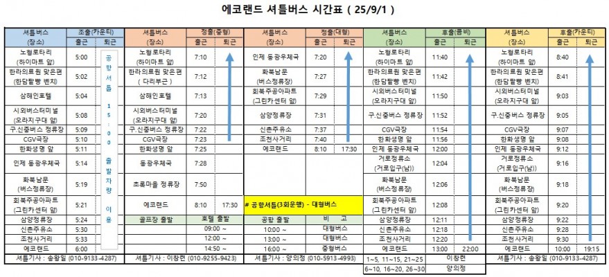 * 업무시간: 오전8시30~오후5시30분