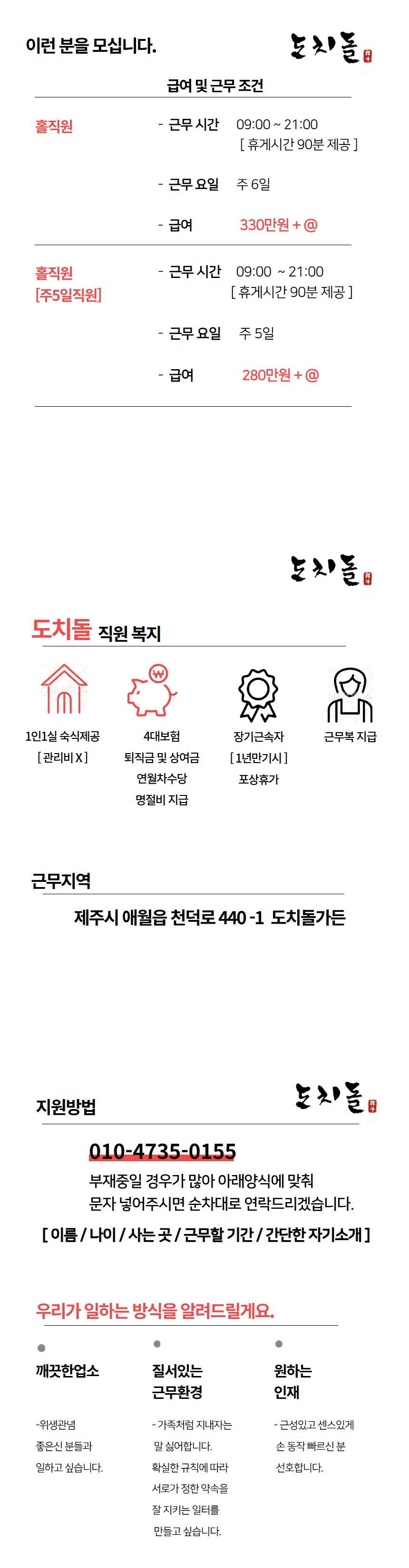[숙식제공/1인1실]_280,330만원_홀직원_모집 페이지 정보 작성자 gOOOOOOOOO8 작성일25-09-29 08:32 조회1,584회 연락처 010-4735-0155 급여 월급 : 330만원 관련링크 본문 . 주소 : 천덕로440-1 이전글 다음글 목록