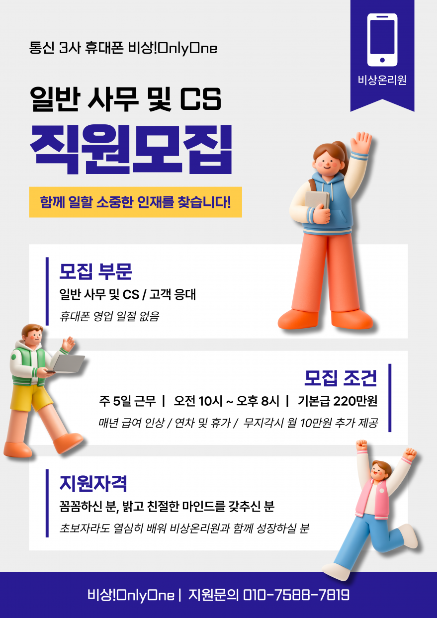 [주 5일 근무] 휴대폰 매장 CS경리 여성분 모십니다! (노형점 채용) 페이지 정보 작성자 아O라 작성일26-01-17 12:34 조회234회 연락처 010-7588-7819 급여 월급 : 220만원 관련링크 본문 - 주소 : 제주특별자치도 제주시 월랑로8길 1 아란야플라자 이전글 다음글 목록