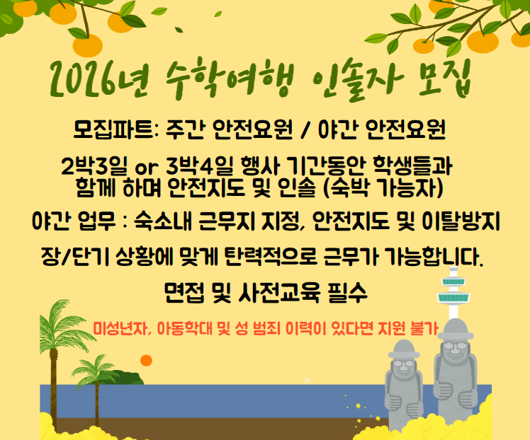 -제주 오렌지 교육에서 수학여행 인솔자를 모집합니다-