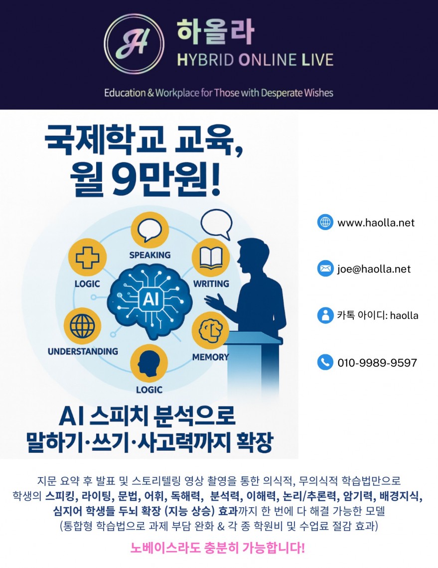 AI 활용한 국제학교식 교육 관리 선생님 모집합니다. 페이지 정보 작성자 하OOOOOOOOO표 작성일25-09-13 14:45 조회2,826회 연락처 010-9989-9597 급여 협의 : 실적에 따라 월 5백만원 이상 가능 모델 관련링크 본문 아래 프로그램 운영하실 분 모집합니다. 과외나 학원 운영하시면서, 아래 AI 통한 국제학교 교육 효과 프로그램을 병행하셔도 좋습니다. 많은 연락 부탁드립니다. 주소 : 제주특별자치도 제주시 오라이동 1202-1 1층 이전글 다음글 목록