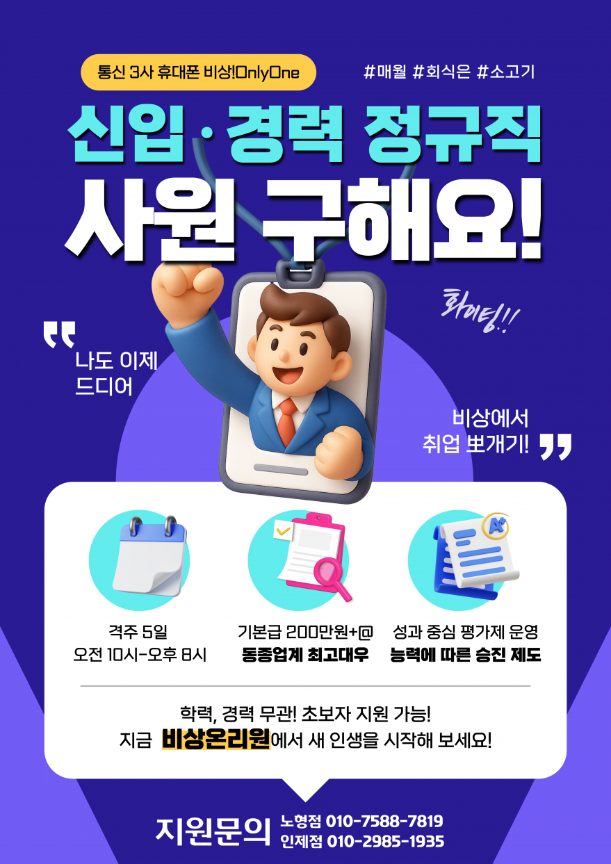휴대폰매장⭐️비상!OnlyOne⭐️직원구해요^^(추가모집) 페이지 정보 작성자 일OO손 작성일26-01-15 17:59 조회306회 연락처 010-7588-7819 급여 월급 : 250만원 이상 관련링크 본문 - 주소 : 제주 제주시 월랑로 8길 1 이전글 다음글 목록