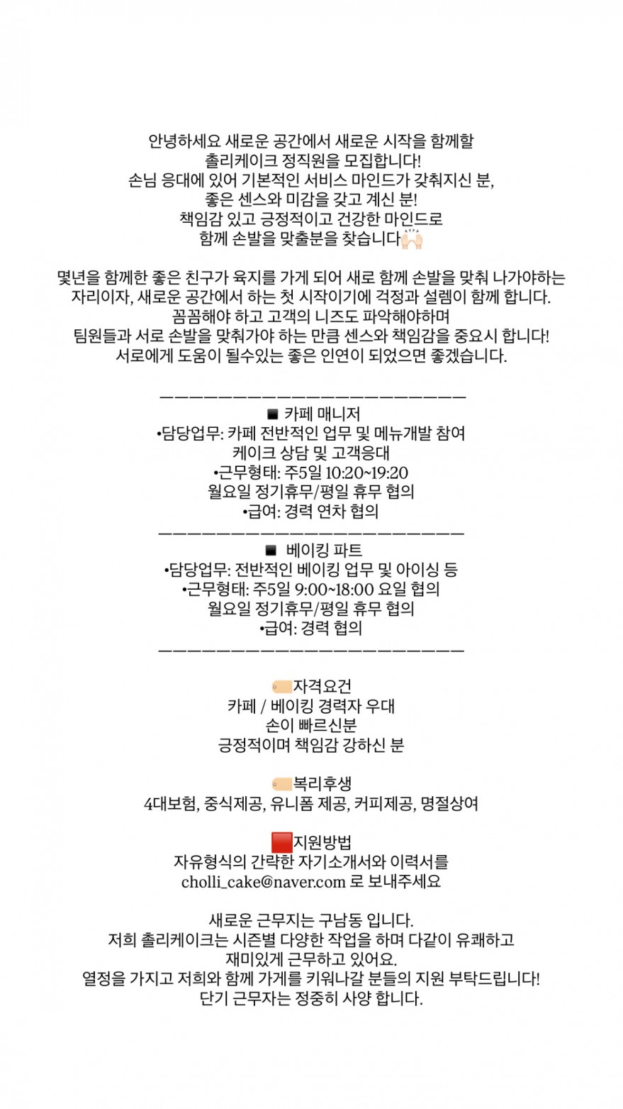 촐리케이크 정직원 모집 합니다 ! 페이지 정보 작성자 cOOOOe 작성일26-03-04 23:33 조회318회 연락처 010-0000-0000 급여 월급 : 협의 관련링크 본문 주소 : 제주특별자치도 제주시 구남로6길 28 이전글 다음글 목록