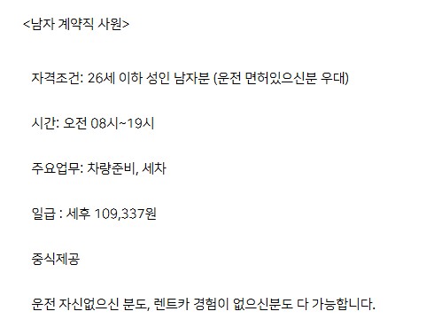 남자_내일_하루_아르바이트를_구합니다 페이지 정보 작성자 제OOOOO카 작성일25-09-07 11:35 조회2,433회 연락처 010-4925-9945 급여 일당 : 109337 관련링크 본문 _ 주소 : 제주특별자치도 제주시 용해로 119 이전글 다음글 목록