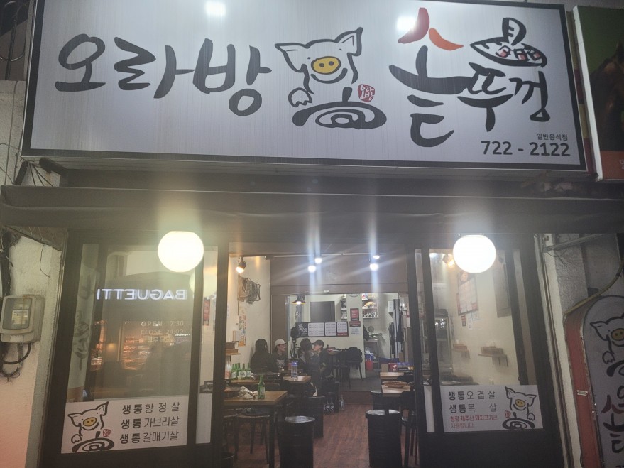 도남오거리 부근 오라방솥뚜껑 고깃집입니다.
