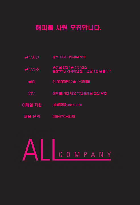 평일 직원 구해요~ 페이지 정보 작성자 다OOOO1 작성일25-03-28 12:26 조회2,572회 연락처 010-3745-6579 급여 월급 : 2100000 관련링크 본문 평일에 근무하실 직원 한분 모집합니당! 편히 문의주세용 주소 : 제주특별자치도 제주시 중앙로 242 1층 이전글 다음글 목록