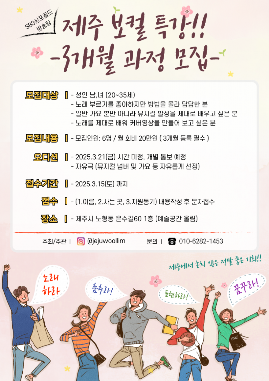 보컬 특강! 3개월 과정 수강생 모집중!~