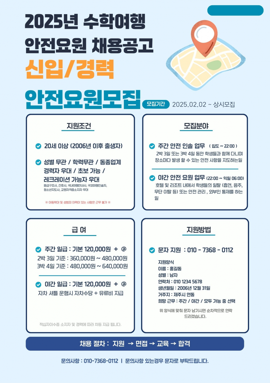 수학여행 인솔자 구인합니다 ! 페이지 정보 작성자 민O2 작성일25-02-16 15:09 조회3,304회 연락처 010-7368-0112 급여 일당 : 협의 관련링크 본문 문의사항있으시면 편하게 연락주세요 주소 : 제주특별자치도 제주시 은남3길 21 이전글 다음글 목록