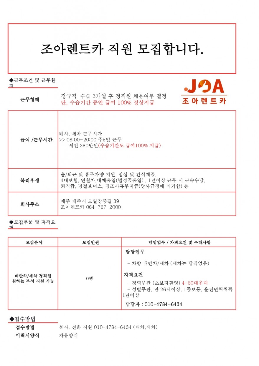 조아렌트카에서 직원을 모집합니다/출퇴근,휴무차량지원/ 페이지 정보 작성자 jOOOOa 작성일25-02-12 08:53 조회2,446회 연락처 010-4784-6434 급여 월급 : 280만원 관련링크 본문 . 주소 : 제주특별자치도 제주시 오일장중길 39 조아렌트카 이전글 다음글 목록