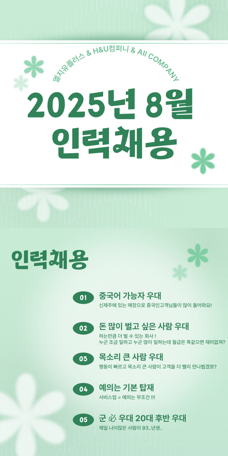 올컴퍼니에서 함께 근무하실 직원분을 구합니다!!