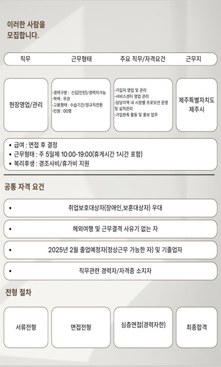 | * 지원방법 전화/문자 문의해주시면 면접일정 조율 도와드리겠습니다. | |||||||