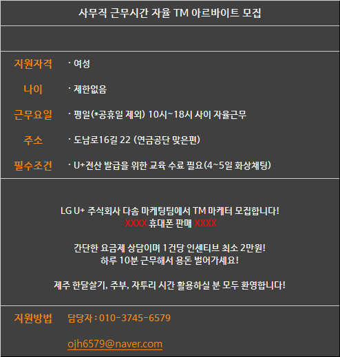 주식회사 다솜 TM 마케터 모집합니다. 페이지 정보 작성자 다OOOO1 작성일25-01-21 16:17 조회3,870회 연락처 010-3745-6579 급여 협의 : 건당 수수료 관련링크 본문 주소 : 제주특별자치도 제주시 도남로16길 22 2층 이전글 다음글 목록