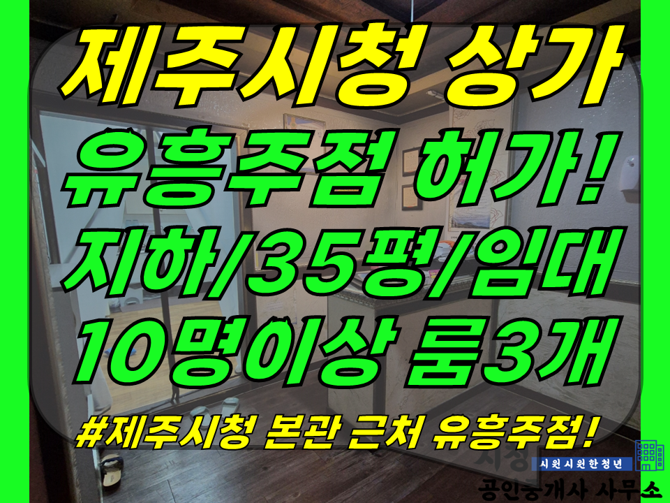 [ 제주시청 본관 근처+유흥주점 허가! 제주시 이도2동 상가 지하1층 임대(35평/룸3+대기실/년세600/시설완비) ]