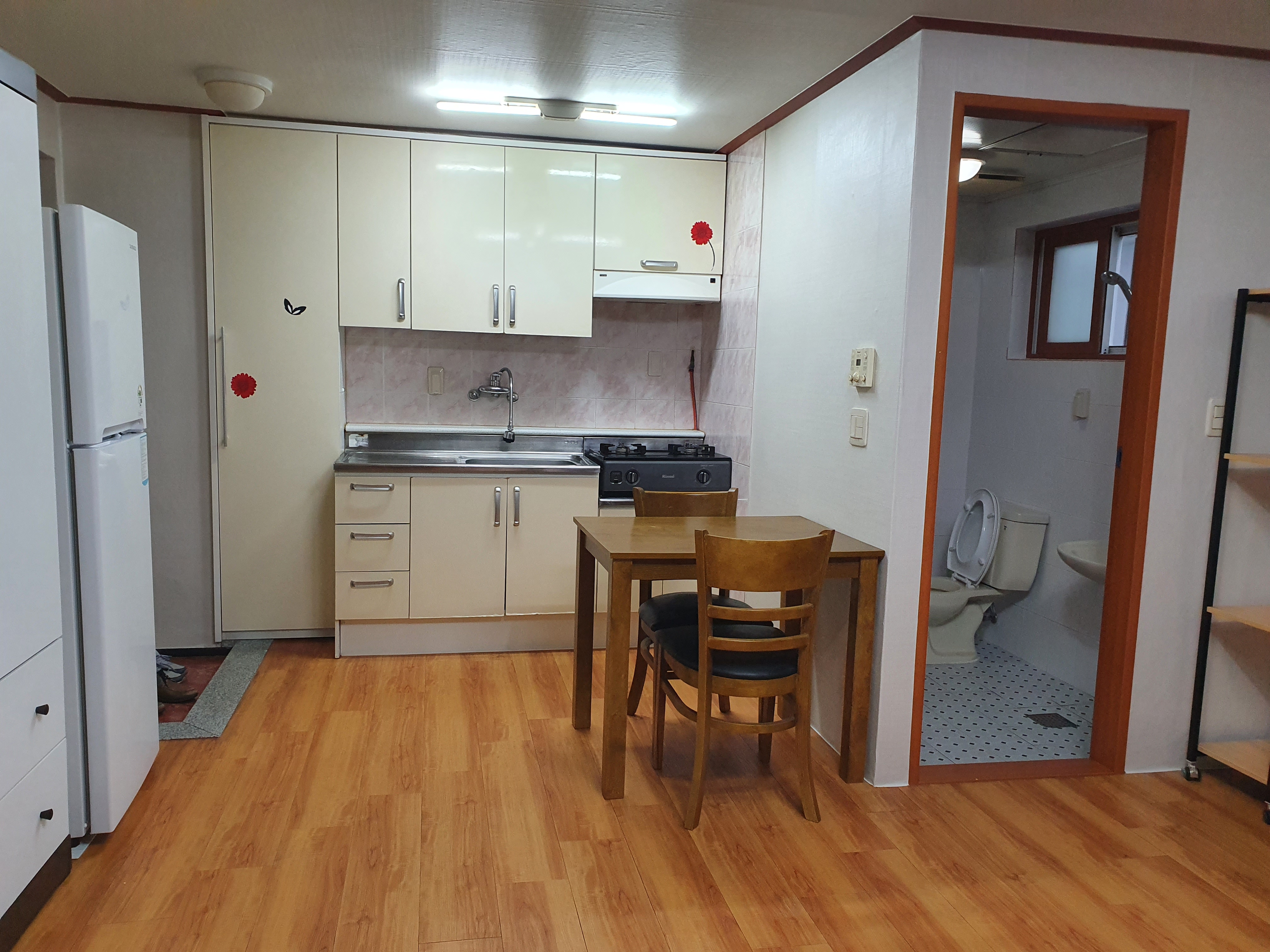 에어컨, 냉장고, 세탁기, 제습기, 싱크대, 옷장, 식탁, 신발장, 가스랜지, TV, 인터넷(wifi포함).