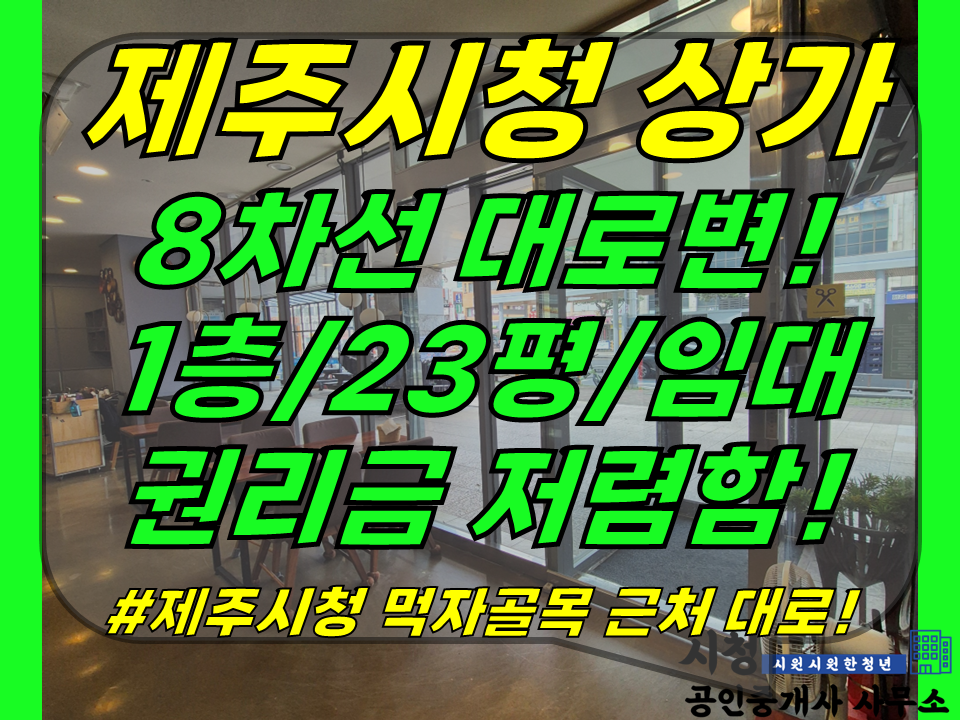 상가점포 | 상가1-388[ (권리 2천내림!)제주시청 근처+6차선 대로변! 제주시 이도2동 1층 상가 임대(23평/제주대학로,제주시청 먹…