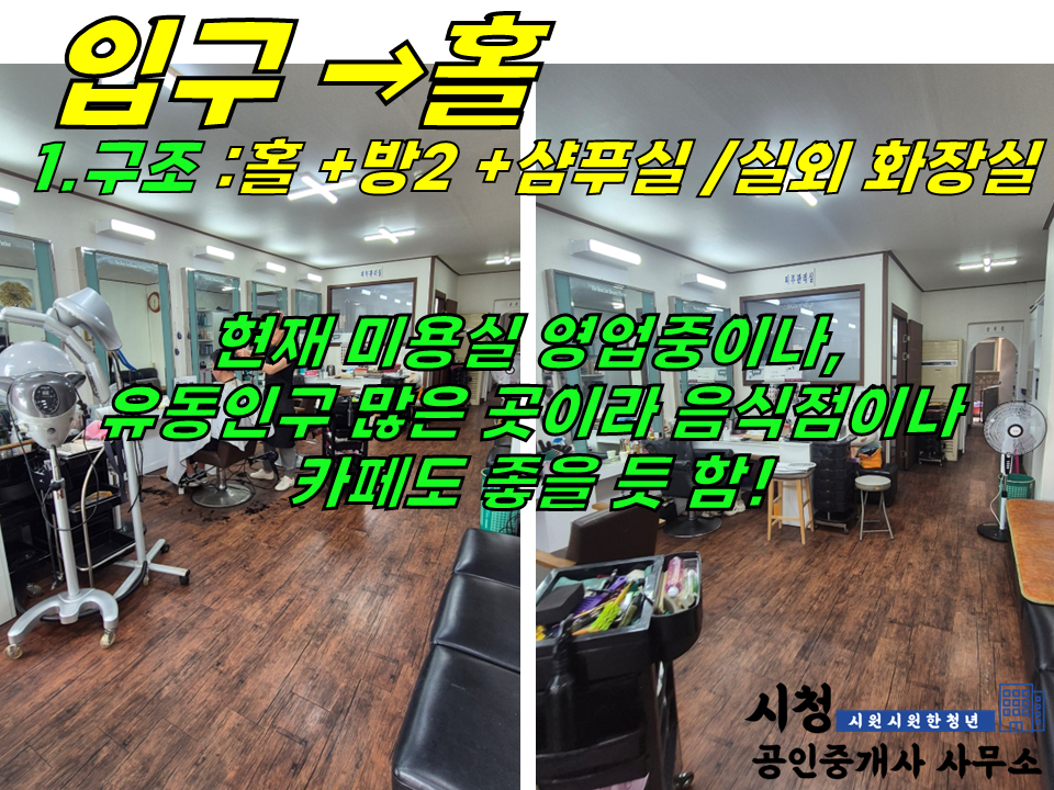 ■옵션 :에어컨 2대, 통유리창, 싱크대, 냉장고, TV 및 미용실 집기 등