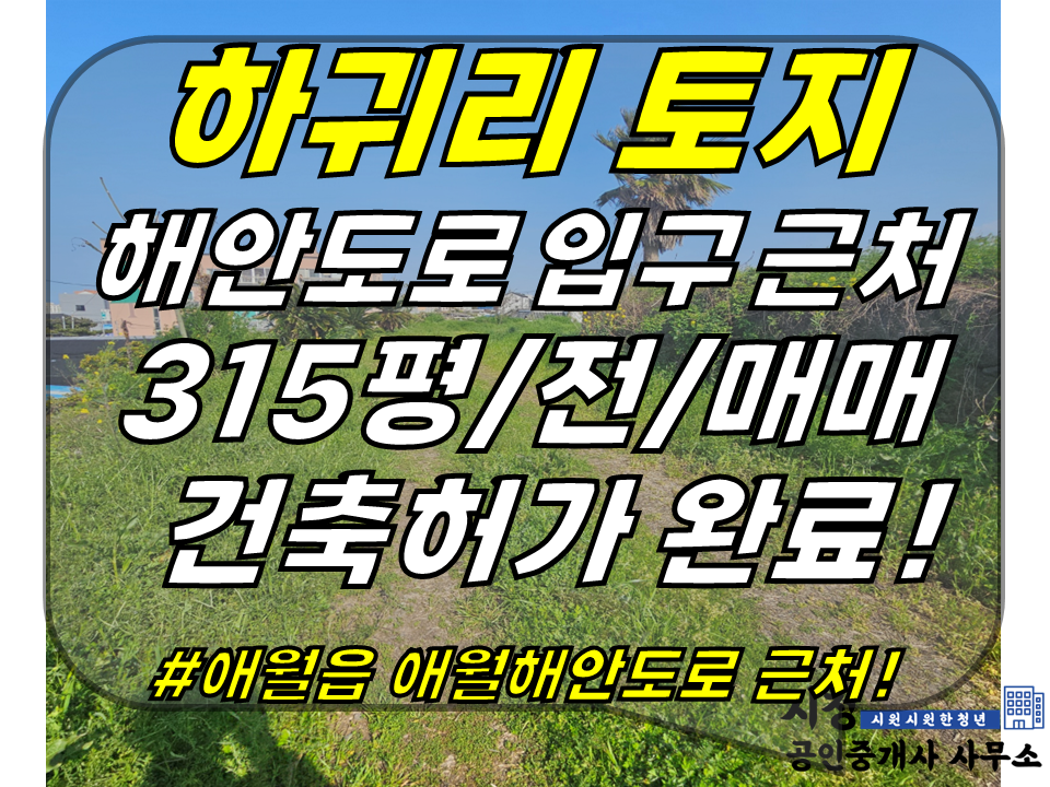 [ (급매)건축허가 완료+일주도로 근처! 애월읍 하귀2리 토지 매매(315평/바다 뷰/차로 바다 2분/주택가-마을 안) ]