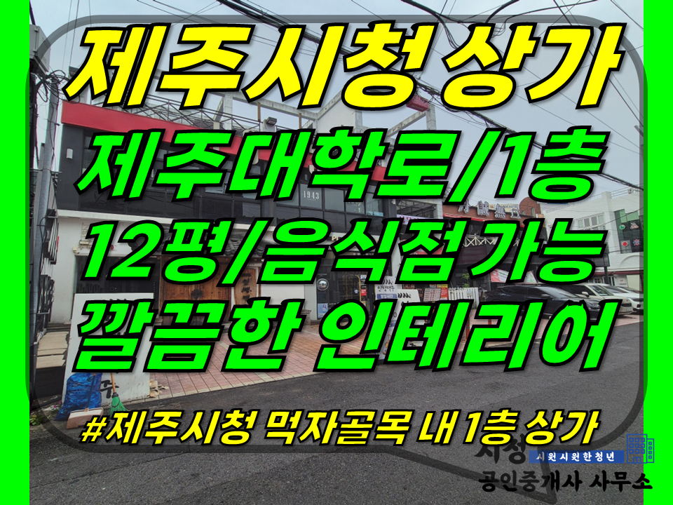 [ (급매)제주시청 먹자골목+권리금 저렴! 제주시 이도2동 상가 1층 임대(12평/시청 최고 메인골목/업종변경 가능) ]