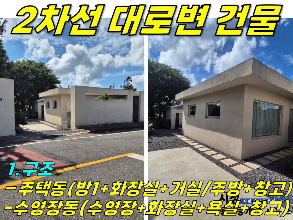 [ 수영장 있는 풀빌라+2차선도로 앞! 한림읍 상명리 단독 1층 매매(건물 2개동/고급펜션/감귤과** 옆/주차편함) ]