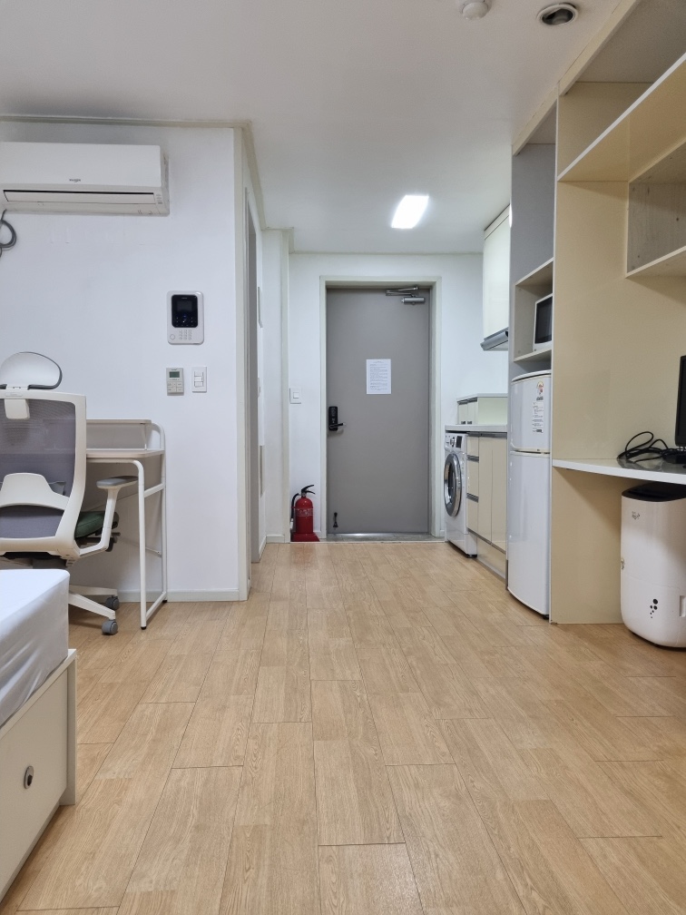 -옵션: 세탁기, 냉장고, 에어컨, 전자렌지, 책상, TV, 침대+매트리스, 옷장을 포함한 풀옵션, 제습기(여름철 빨래건조에도 탁월)
