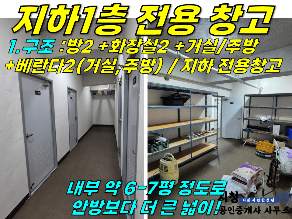 ■구조 :방2 +거실/주방 +화장실2 +베란다2(거실,주방) / 지하 전용 창고(6-7평) 등