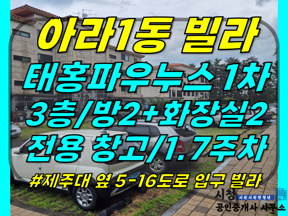[ 제주대 근처+지하 전용창고! 제주시 아라1동 아라태홍파우누스 1차 빌라 3층 매매(30평/방2+화2/에어컨2/1.7주차) ]