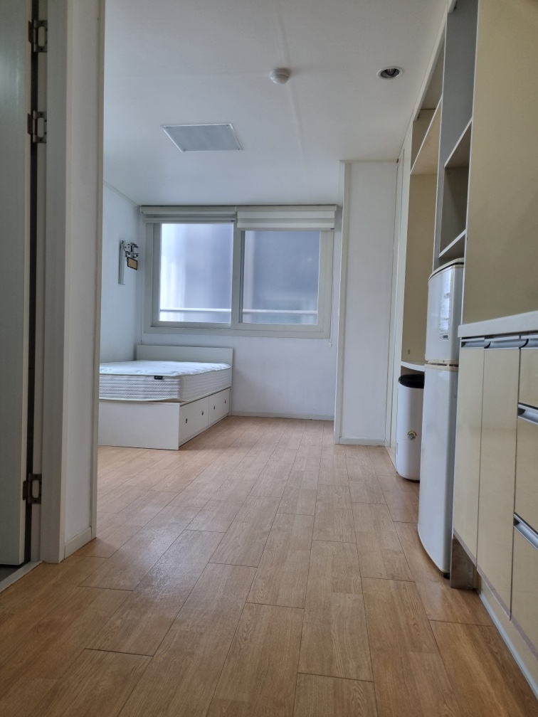 -옵션: 세탁기, 냉장고, 에어컨, 전자렌지, 책상, TV, 침대+매트리스, 옷장을 포함한 풀옵션, 제습기(여름철 빨래건조에도 탁월)
