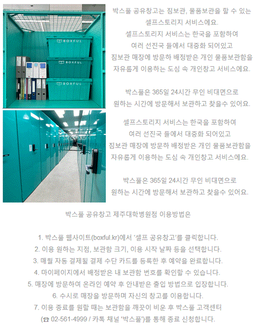 기타 | 박스풀공유창고 제주대학병원점, 단기간 개인창고 사용해보세요