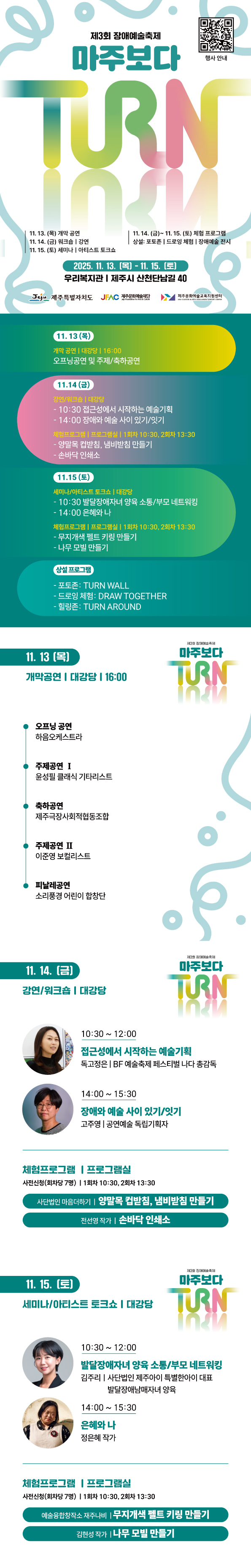 기타 | 2025년_장애예술축제_턴(TURN)_<마주보다>_프로그램_신청_안내 페이지 정보 작성자 이바 작성일25-11-11 16:08 조회1,680회 연락처 010-0000-0000 관련링크 본문 세부사항https://www.jfac.kr/notification/notice/19568?page=1 이전글 다음글 검색 목록