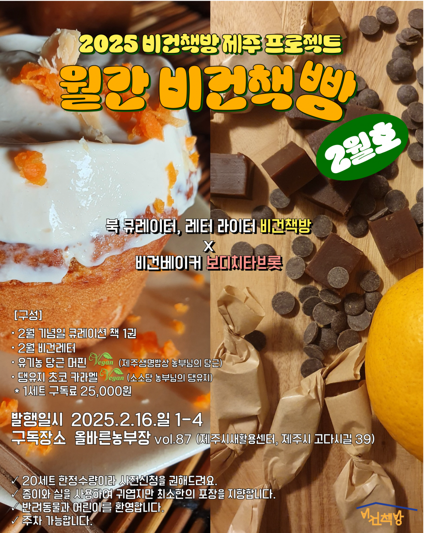 [비건책방 제주] ❝월간 비건책빵 2월호❞ 구독신청 페이지 정보 작성자 dOOOOm 작성일25-02-12 14:14 조회6,470회 연락처 010-0000-0000 관련링크 본문 ☗2025 비건책방 제주 프로젝트【 월간 비건책빵 】 이전글 다음글 목록