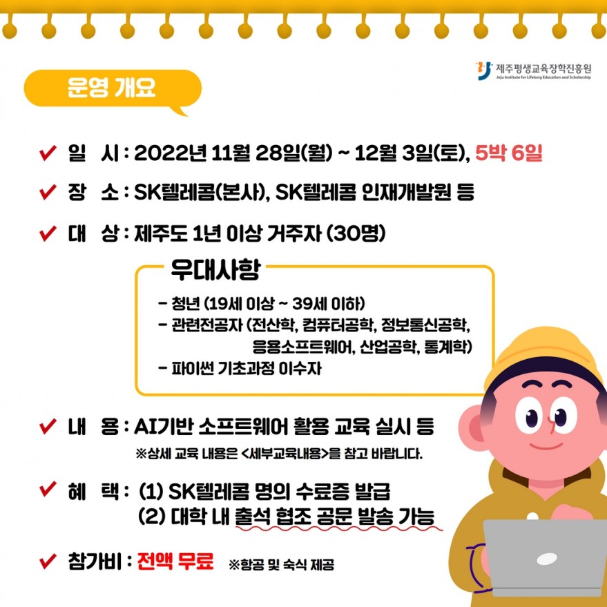 SK텔레콤 X 제주평생교육장학진흥원과 함께하는 5박6일 간 국내 연수의 기회!