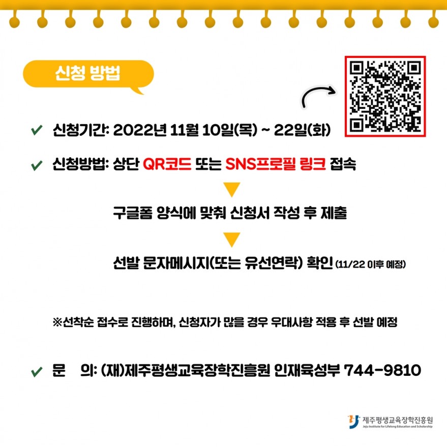 문의) 제주평생교육장학진흥원 인재육성부 064)744-9810