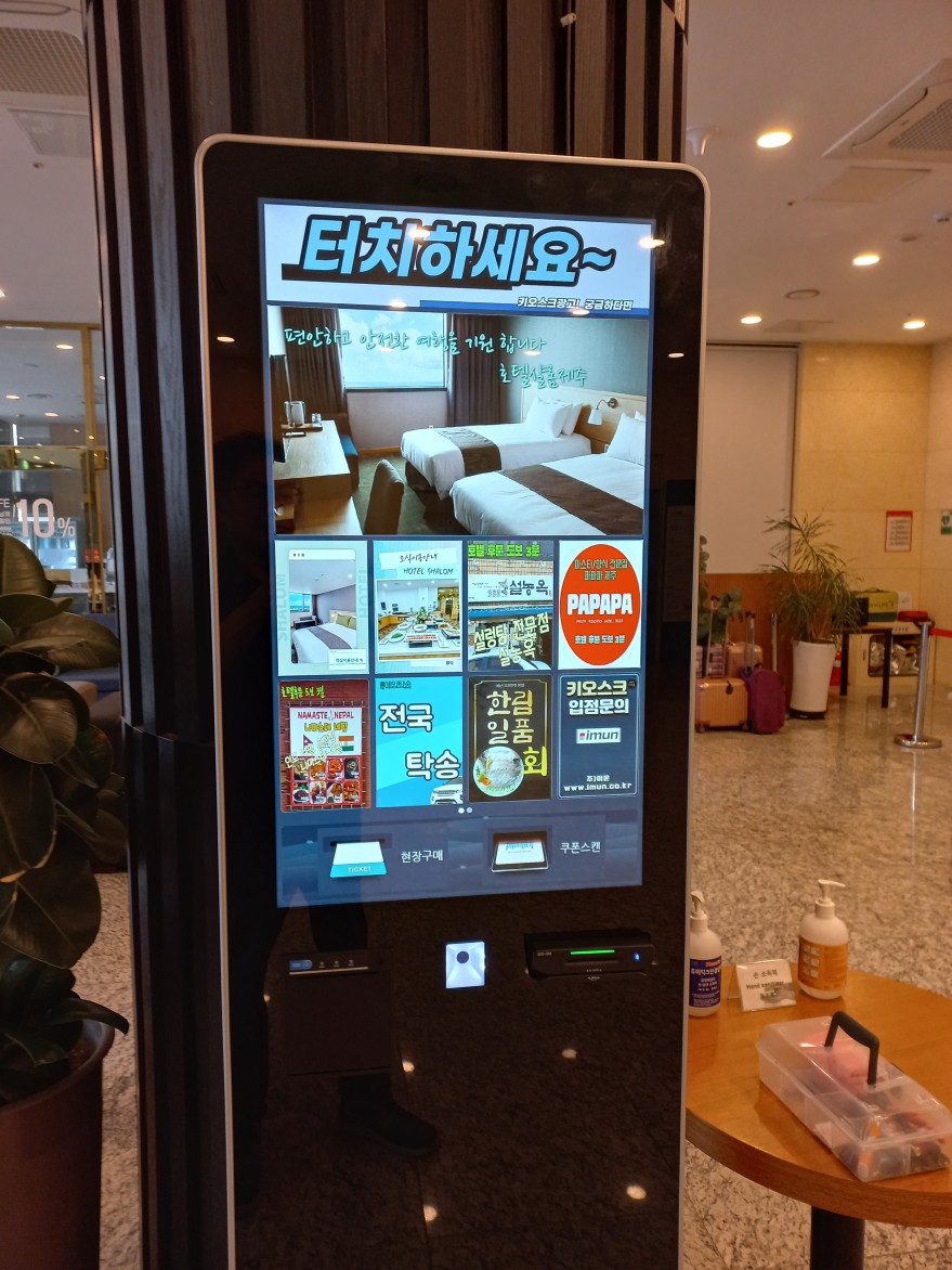 ㈜이문은 자체 제작 프로그램을 탑재한 정보(광고)송출형 키오스크를