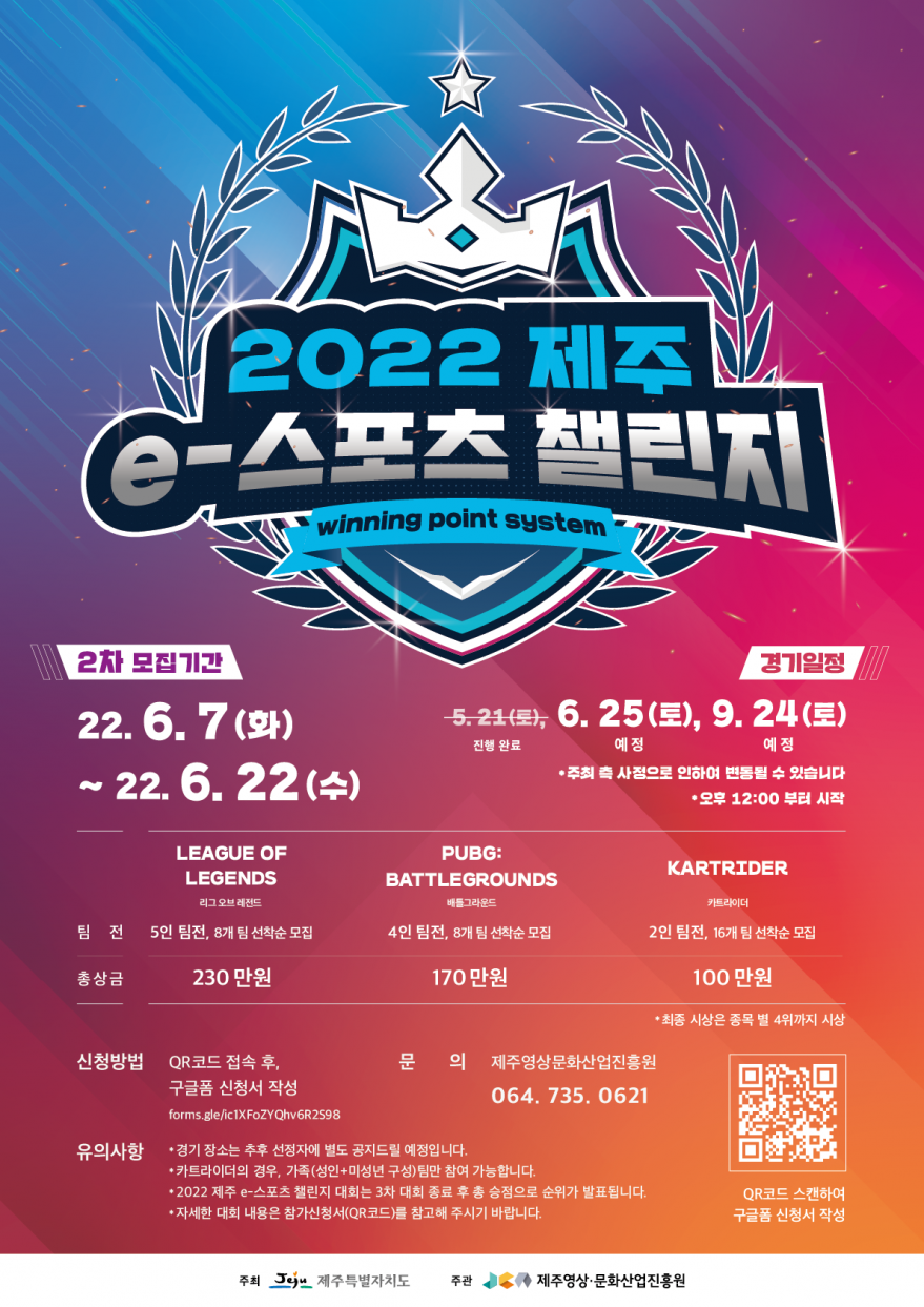 2022 제주 e-스포츠 챌린지 2회차 모집 시작 페이지 정보 작성자 kOOOOg 작성일22-06-09 13:26 조회6,121회 연락처 010-4908-1300 관련링크 본문 이전글 다음글 목록