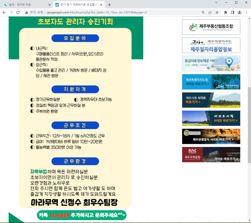 속지 마세요 페이지 정보 작성자 파OO트 작성일22-05-26 16:19 조회5,894회 연락처 010-3140-2478 관련링크 본문 캡쳐한 내용은 보이스피싱 광고이니 속지 마세요현재 순천경찰서에서 수사 중인 상황입니다교묘하게 광고글을 바꿔서 계속 내고 있으니 유의하세요 이전글 다음글 목록